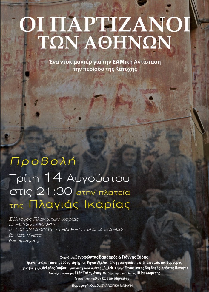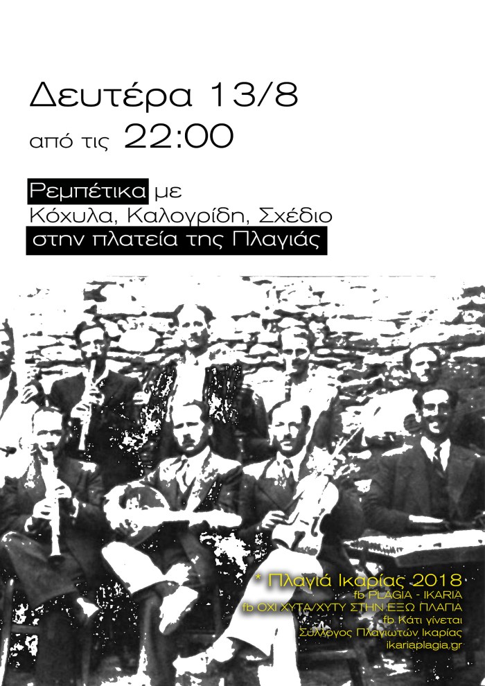 Τρίτη 20 Αυγούστου στις 21:00 στην Πλαγιά Ικαρίας στο Σχολείο.